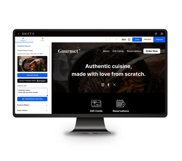 オンラインオーダーや予約が可能なWebサイトをすぐに作成できます。
